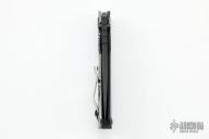 This SMF CC by Strider Knives features a black blade and smooth black G-10 and stonewashed titanium handle and matching tip up titanium clip. The blade and handle has laser engraving. Notches on thumbrest, rear of handle, and early lockup. Includes Hinderer "Lock Bar Stabilizer" for maximum reverse lock retention. Excellent condition. Comes with a zippered case.