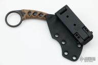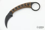This PiKa is a Doug Marcaida design produced by Bastinelli Knives, it features a chisel ground black Cerakote hawkbill blade with swedge, .150" blade stock and .678" blade depth, full tang construction. The handle has tan cord wrap with bronze menuki. Comes with kydex sheath with Dots belt clip. Comes with original box.  New from Maker!