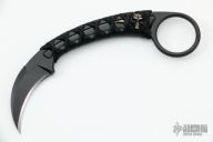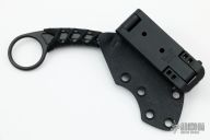 This PiKa is a Doug Marcaida design produced by Bastinelli Knives, it features a chisel ground black Cerakote hawkbill blade with swedge, .150" blade stock and .678" blade depth, full tang construction. The handle has black cord wrap with bronze menuki. Comes with kydex sheath with Dots belt clip. Comes with original box.  New from Maker!