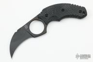 This Ligament by Bastinelli Knives is a Fred Perrin design, it features a black pvd blade with swedge and notched thumbrest, .118" blade stock and 1.004" blade depth, hidden tang construction. The handle has custom micarta scales. Comes with a kydex sheath with belt clip and zippered case. New from maker!