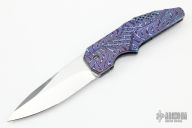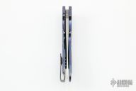 This Commando II SLT by GTC Knives features a hand rub satin finished blade with notched thumbrest and checkered flipper. The handle has an integral mokuti frame with integral clip. The handle was made as a flat piece, milled and then folded over as well as the clip. Rides on bearings, nice detent, lockup and blade seating. Dated 2018. Excellent Condition.