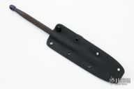 The Devil Dart from Pat Crawford is an anodized titanium sleeve dagger. It is designed and refined after seeing the OSS sleeve dagger from World War II. The blade is triangle shaped for strength and easy penetration. The handle is knurled for a sure grip. Each dart is individually hand ground and bead blasted for the highest quality. Comes with a kydex sheath. New from maker at the 2022 Blade Show.