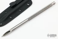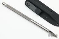 This Survival Straw by Crawford Knives features a 8" knurled stainless steel straw with very sharp tip. Comes with kydex sheath and ball chain. New from maker at the 2024 Blade Show.