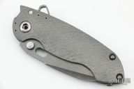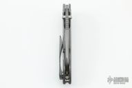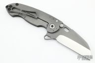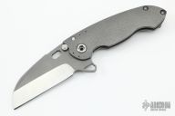 This Solo Flipper V6 by Direware features a two-tone blade with notched thumbrest and a flipper. The handle has a blasted and fully carved titanium frame with a matching tip up titanium clip and titanium barrel spacers. Comes with original box. Rides on bearings, nice detent, lockup and blade seating. New from maker!