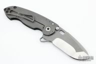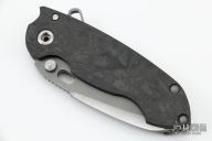 This Solo Flipper V6 by Direware features a two-tone blade with notched thumbrest and a flipper. The handle has a marble carbon fiber and blasted titanium frame with a matching tip up titanium clip and titanium barrel spacers. Comes with original box. Rides on bearings, nice detent, lockup and blade seating. New from maker!