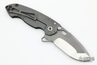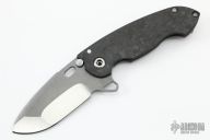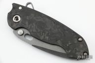This Solo Flipper V6 by Direware features a two-tone blade with notched thumbrest and a flipper. The handle has a marble carbon fiber and blasted titanium frame with a matching tip up titanium clip and titanium barrel spacers. Comes with original box. Rides on bearings, nice detent, lockup and blade seating. New from maker!