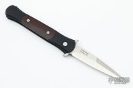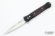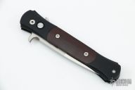 This Don by Pro-Tech features a satin finished blade with false top edge. The handle has a black aluminum frame with cocobolo inlays. This one is Prototype Feb. 2009 s/n 65 Comes with a Pro-Tech box and papers. Excellent condition.