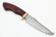 This knife by Ampan Ponyangnok features a hand rub satin finished blade with hamon (SK5 Steel), .177" blade stock and 1.465" blade depth, hidden tang construction. The handle has a brass guard and a chingchan wood grip. Comes with a zippered case. Excellent condition.