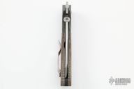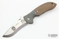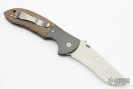 This custom Super Commander by Ernie Emerson features a hand-ground satin finish blade, dovetailed bead blast titanium bolsters and liners, and green micarta scales, black G-10 backspacer. Stainless steel clip. Wave feature. Includes original box. Has a couple light scratches on the frame, otherwise excellent condition.