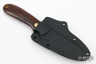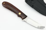 This K-8 Semi Skinner by Dozier Knives features a satin finished blade, .131" blade stock and .865" blade depth, full tang construction. The handle has cocobolo scales with brass pins and lanyard hole. Comes with kydex sheath with belt clip. New from maker at the 2022 Blade Show.