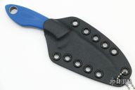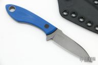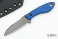 This TK-1 Wharnie XL by Tom Krein features an acid washed blade with .095" blade stock and .775" blade depth, full tang construction. The handle has blue G-10 scales with black liners and pin, and aluminum lanyard tube. Includes Kydex neck sheath with ball chain. New from maker at the 2022 Blade Show.