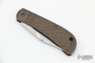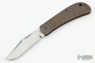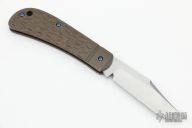 This Lanny's Clip from Enrique Pena features a satin finished blade with nail nick. The handle scales are jigged titanium. Very smooth action. The spring is flush in the closed, half stop, and open position. Impeccable fit and finish. This is a gorgeous variation of the traditional slipjoint. Has some dings in the spine, and some light scuffs on the bolsters. Great condition otherwise.