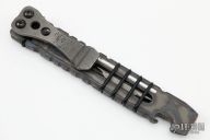 This prybar by Tim Miller is made from 6AL4V Titanium, it is .275" thick, has rubber o-rings holding in a phillips/flathead bit and a 1/4" hex driver for the bit, bottle opener, has lanyard holes and a titanium clip. Comes with COA. New from maker at the 2022 Blade Show.