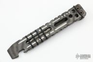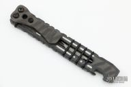 This prybar by Tim Miller is made from 6AL4V Titanium, it is .275" thick, has rubber o-rings holding in a phillips/flathead bit and a 1/4" hex driver for the bit, bottle opener, has lanyard holes and a titanium clip. Comes with COA. New from maker at the 2022 Blade Show.