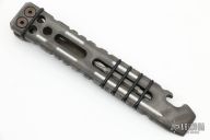 This prybar by Tim Miller is made from 6AL4V Titanium, it is .275" thick, has rubber o-rings holding in a phillips/flathead bit and a 1/4" hex driver for the bit, bottle opener, has lanyard holes and a titanium clip. Comes with COA. New from maker at the 2022 Blade Show.