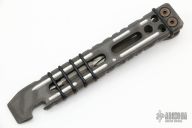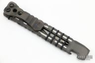 This prybar by Tim Miller is made from 6AL4V Titanium, it is .275" thick, has rubber o-rings holding in a phillips/flathead bit and a 1/4" hex driver for the bit, bottle opener, has lanyard holes and a titanium clip. Comes with COA. New from maker at the 2022 Blade Show.