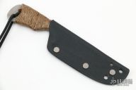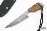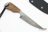 This Devil Finger by Fred Perrin features a blade with a visible temper line, .100" blade stock and .736" blade depth, full tang construction. The handle has cord wrap and lanyard hole. Includes kydex sheath. New from maker at the 2022 Blade Show.