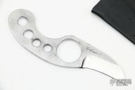 Fred Perrin makes fixed blades and folders of every kind; Forges Damascus steel or uses stock removal techniques. In any case, he always does his own heat treatment and tempering. As far as his background in the martial arts, Fred has spent two years in the French Army Commandos and worked as a bodyguard. He was a national Tae Kwon Do champion and a European full contact stick-fighting champion. He has trained in Kali, and God knows what else. His weapon of choice is the butterfly knife, in which he excels. Aside from being France’s most famous and controversial knife maker and tactical writer, Fred runs a school where he teaches a very unique blend of knife, stick, and empty hand techniques. He is often contracted by France’s elite police units for seminars. He also provides some agencies with custom-made weapons for ballistic testing.