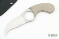 This Limited Edition Griffe Tiger neck knife by Fred Perrin features a satin finished blade and polished handle, .116" thick blade and .975" blade depth, full tang. The handle has tan G-10 scales. Comes with kydex sheath. New from maker at the 2022 Blade Show.