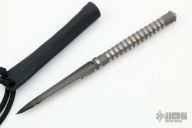 These titanium spikes from Steven Kelly are machined from a solid piece of titanium and have a tumble finish. Each spike comes in a black kydex sheath with paracord lanyard for neck carry or to be used as a static line when carrying inside the waistband. New from the maker at the 2022 Blade Show.