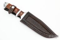 "I started making knives in 1985. I use the stock removal method. I also discovered the wonderful world of forged knives, I also started making full integrals using a milling machine. I usually have all three types at the shows I attend and I use most common steels. I do my own heat treating and like to use handle materials like stag, ivory, wood, micarta, sheep horn, and others. I make my own sheaths individually for each knife."