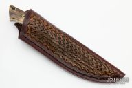 "I started making knives in 1985. I use the stock removal method. I also discovered the wonderful world of forged knives, I also started making full integrals using a milling machine. I usually have all three types at the shows I attend and I use most common steels. I do my own heat treating and like to use handle materials like stag, ivory, wood, micarta, sheep horn, and others. I make my own sheaths individually for each knife."