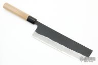This Kurouchi Nakiri by Shigefusa features a laminated steel blade with .135" blade stock and 2.394" blade depth, hidden tang construction with a wood handle. Comes with original box. Excellent condition.