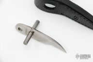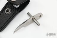 This Nastie by Mickey Yurco features a satin finished blade with .179" blade stock and .515" blade depth, full tang construction with titanium finger grips. Comes with a black leather sheath. New from maker at the 2022 Blade Show.