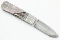 Barry Davis is from New York, and sold his first knife in 1980. He was a protégé of Jim Schmidt and specializes in collector grade folding knives with his own Damascus. Except for the few knives with scrimshaw, Davis' knives contain no parts made by others.