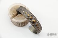 This bracelet has a 1.25" opening and is 2.625" accross. Brand new from the maker at the 2022 Blade Show.