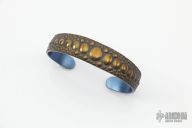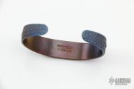 This bracelet has a 1.125" opening and is 2.75" across. Brand new from the maker at the 2022 Blade Show.