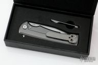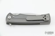 The Chaves Knives Sangre Street flipper is part of the Ultramar series, a production line made by Reate to bring Ramon's exceptional custom designs to a wider audience. It comes equipped with an aggressive wharncliffe style blade that deploys effortlessly on ball bearings. An ergonomic titanium frame lock handle provides a comfortable grip and absolute blade lockup. The Sangre Street comes outfitted with a signature Chaves skull pocket clip for secure everyday carry.