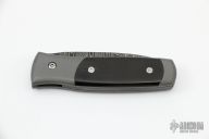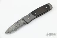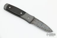 This Small Automatic by Z Custom Knives features a Damascus drop point blade. The handle is comprised of a bead blasted titanium frame with buffalo horn inlays and push button over a fileworked stainless steel back spacer. Nice action, lockup and blade seating. Has some light scuffs, otherwise excellent condition.