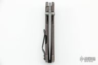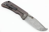 This MAC2 features a tumble finished blade with dual thumbstuds and a notched thumbrest. The handle features a laser engraved and tumbled titanium frame with a matching tip up pocket clip. Includes box and papers. New from Maker!