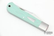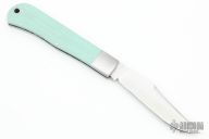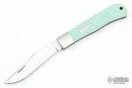 This Back Pocket Slipjoint by Dwayne Chancellor features a hand rub satin finished blade with nail nick. The handle has stainless steel bolsters and liners, CPM154 steel spring and Tiffany G-10 covers with a stainless steel escutcheon. Has half-stop, flush in all positions. New from maker.