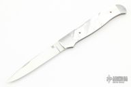 This gorgeous lockback from Master Smith Bailey Bradshaw features a drop point blade with a hand rubbed satin finish and nail nick. The handle has stainless steel bolsters and liners, mother of pearl covers with a stainless steel backspacer. Workmanship and function are everything you'd expect from a Master Smith such as Bradshaw. Excellent condition.