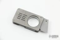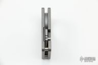 The second generation Nug is back. Available in Bead Blast Stone Washed and Black TiCN coated (Titanium coated). Design has been improved for smoother opening, and we have replaced the ball bearing system with Teflon washers for easy maintenance. The blade has been pushed forward to make sharpening easier. Material and Construction - The Nug has a hardened VG10 steel blade (HRC 58-60) and Titanium for handle. VG10 also known as V Gold steel, is a premium Japanese steel, designed specially for knives. STANDARD NUG Dimensions: 56mm x 31mm x 12mm / Blade: 18mm length, 3mm thick / Hole: 22mm / Weight: 70g This one is stonewashed and is in excellent condition. Comes with a felt pouch and COA dated 6/2021.
