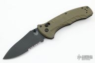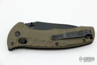 This model of the Benchmade Turret sports a black partially serrated blade made from CPM-S30V, and OD green G-10 handle scales.