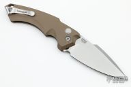 This EX-A05 by Hogue is an Allen Elishewitz design automatic with stonewashed blade. The handle has a anodized aluminum frame with tip up reversible stainless steel clip. Comes with nylon zippered case, original box and papers. Includes extra clip. Excellent condition.