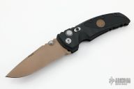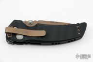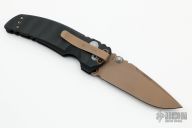 This Hogue/Elishewitz design features a FDE Cerakote blade with dual thumbstuds and notched thumbrest. The handle has milled black G-10 frame with button lock, safety and tip down carry clip. Includes original box, zippered case and papers. Excellent condition.