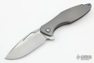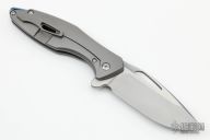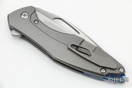 This Arius by Koenig knives features a bead blast finish blade with satin flats, thumbhole and flipper. The handle has a bead blasted titanium frame with a titanium tip up clip, anodized titanium backspacer. Has ceramic bearings and a ceramic detent ball. Nice detent, lockup and blade seating. Comes with original box and COA October 6 2020. Excellent condition.