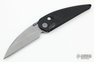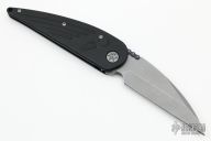 This MRX by Rat Worx features a razor style stonewashed blade. The handle is black aluminum with a chain drive opening mechanism. Comes with a Guardian Tactical box, zippered case and papers. Excellent condition.