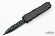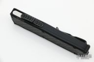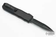Add a state of the art OTF automatic to your rotation with the RECON-035 from Guardian Tactical. This knife features a blackwashed double edged blade with partially serrated edges. The handle features a black aluminum frame with carbon fiber inlays. Guardian Tactical's patented OTF mechanism provides smooth, responsive opening action. The unique thumb slide design is separated from the aluminum handle by a steel plate and 3 ceramic balls that eliminate grinding and wear. An innovative locking mechanism sits off to the side of the blade channel so it doesn't drag against the blade when opening and closing. These features eliminate the friction on the blade and button that have always plagued OTF knives. Take your OTF game to the next level with the Guardian Tactical RECON-035. Features: Anodized aluminum handle is compact and lightweight for durable everyday carry. Innovative OTF mechanism offers fast and smooth opening action for responsive tactical deployment. Item includes a stainless steel pocket clip for secure tip-down carry. Excellent condition. #7566