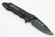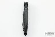 This Helix framelock flipper by Guardian Tactical features a blackwashed blade with dual thumbstuds, flipper, and notched thumbrest. The handle has a carbon fiber frame, black titanium backspacer and tip up stainless steel clip. Nice detent, lockup and blade seating.  #1107 on clip and dated 12/2017.  Includes the original box. Excellent Condition.