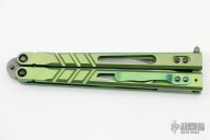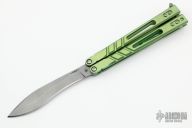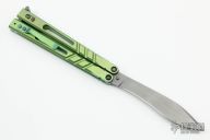 This Alpha Beast Balisong 3.0 from Blade Runner Systems (BRS) features a tumble finished kukri blade. The handle is milled and tumbled titanium with T latch on pommel. Excellent condition. Comes with original box and papers.
