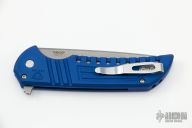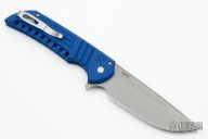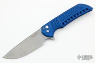 This Mordax by Pro-Tech is a Ferrum Forge design that was produced trough MassDrop. It features a stonewashed blade with flipper. The handle has a blue milled aluminum frame with tip up stainless steel clip. Comes with original box and papers. Excellent condition.