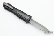 This knife is a Deadlock Model C by Grant and Gavin Hawk. It has a double-edged stonewashed blade. The handle has a carbon fiber and black aluminum frame with a tip down spring clip, titanium. The thumb slide on the handle is also titanium and handle has titanium overlays. Comes with a cloth pouch. Grant and Gavin Hawk set out to create a double action OTF with no blade play.... They did it, NO blade play. Comes with tool, cloth pouch. Excellent Condition.