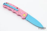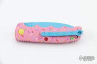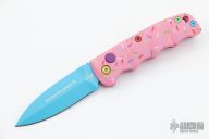Have you ever been unfortunate enough to have to share a donut? Your plight only gets worse when you find you have to cover your high-speed, low-drag, modified, custom, mirror-edged piece of pocket jewelry in sticky sweetness. What you need is a knife designed from the ground up to go to war with a donut. And although its path to existence was unorthodox, the Dessert Warrior is here! This automatic will snap open before anyone can take more than their half of the donut. The handle is bright pink with sprinkles, and the blade has a candy blue finish, making the knife blend in with the pretty pastries of the shop. Gone are the days of not having the right tool for the job!
