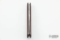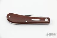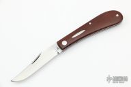 This Shadow Trapper by Charlie Bell features a satin finished blade with nail nick. The handle has brown canvas micarta covers with stainless steel escutcheon, stainless steel liners and CPM154 spring. Has half-stop, flush in all positions. Comes with zippered case. New from maker.