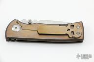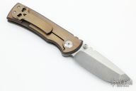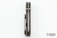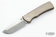 This Redencion framelock folder by Ramon Chaves features a hand ground blade with working finished grinds and hand rub satin finished flats, notched thumbrest and dual thumbstuds. The handle has anodized and satin finished titanium frame with blasted edges, Ramon's signature titanium skull pocket clip is positioned for tip-up carry. Very nice detent, smooth action, and rock solid lockup. Comes with a zippered case. Has a few light scratches, otherwise excellent condition.